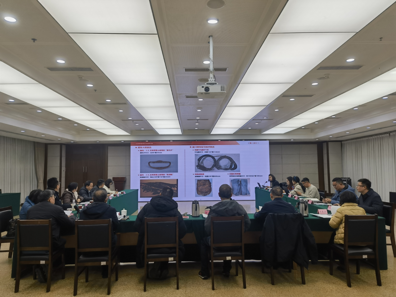 北京清尚建筑装饰工程有限公司依次就长征精神教育馆文献文物、长廊地面雕刻内容、纪录片剪辑、视频制作小样、UI图文排版作了集中展示和详细说明。与会专家逐项讨论,从文献文物选取和复制仿制方式、视频素材选择和细节处理、图文选取严谨权威等方面,提出了一系列专业性和建设性的意见建议。